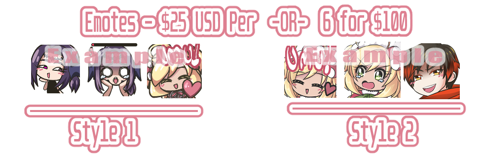 Simple/Style 1 - $30 per CharacterDetailed/Style 2 - $50 per character